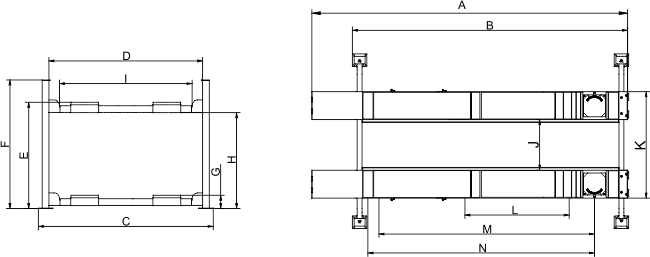 | Longitud total (sin rampas) | B | 4600 mm (181 1/8″) |