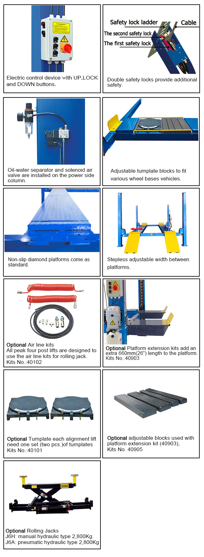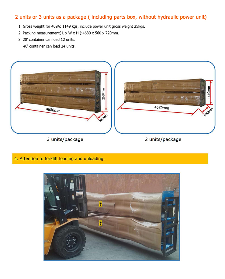 • Capacidad de elevación: 4000KG, certificado CE.